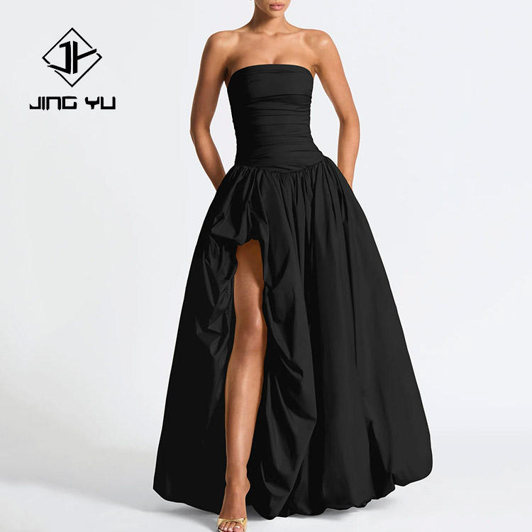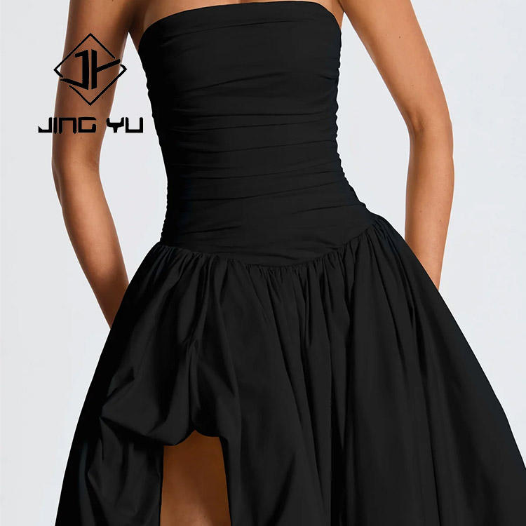 Factory Fashion Luxury Dress Black Irregular Large Skirt Soft Tube Top Dress OEN Custom Linen Mixed Cotton Midi Dress