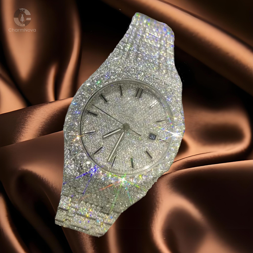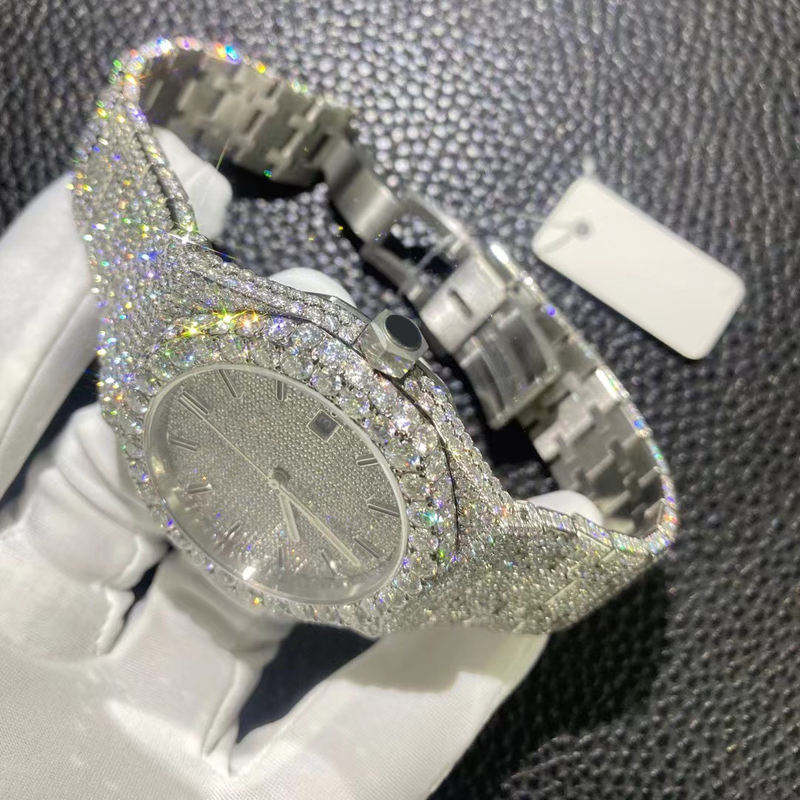 Orologio Automatico da Uomo di Alta Gamma Personalizzato con Diamanti Sintetici Incastonati a Mano e Moissanite su Acciaio Inossidabile