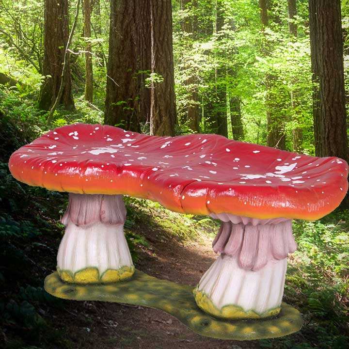Statua a forma di sedia a fungo in resina e fibra di vetro, colorata, a grandezza naturale, fatta a mano in fabbrica, personalizzabile, per arredo giardino