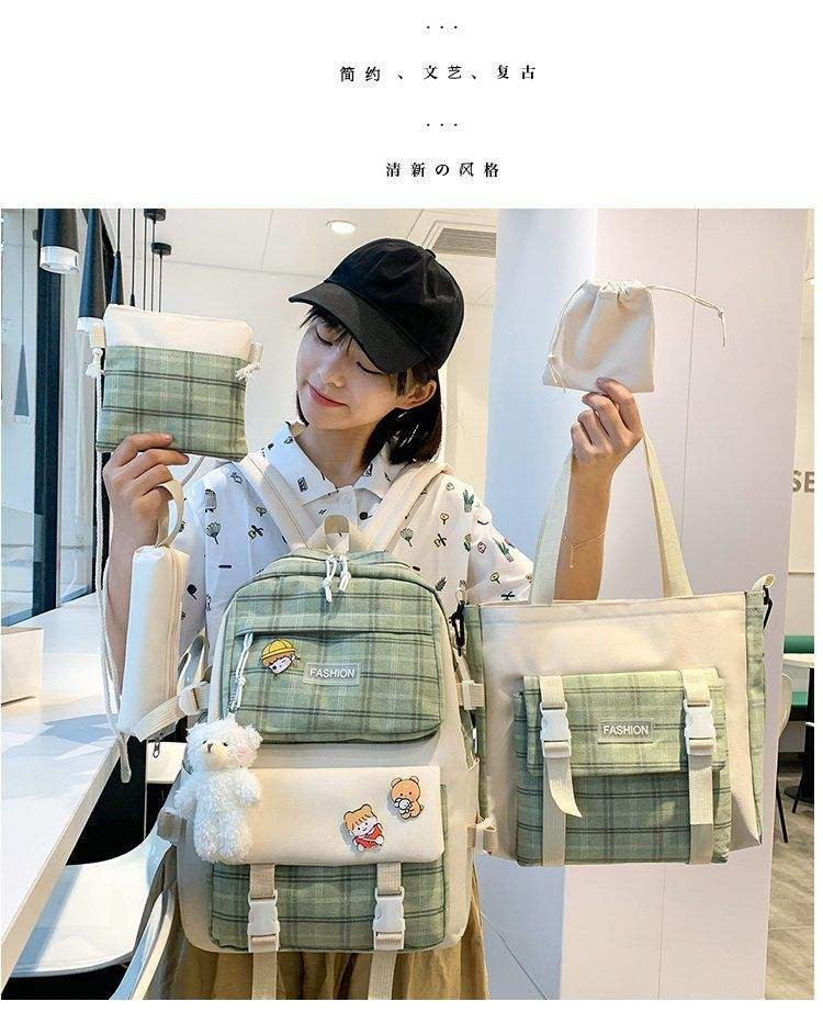 Factory Hot Sell High Quality Women Travel Cute 5pcs Set Primary Pencil Case Canvas School Bags Kids Backpack Set for Teens Girl