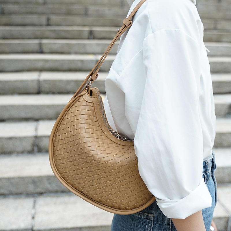 Factory INS Hot Sale Fashion Trends Vintage Handbags Genuine Leather Woven Crescent Armpit Shoulder Bags for Wome