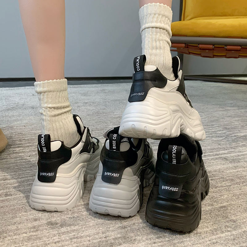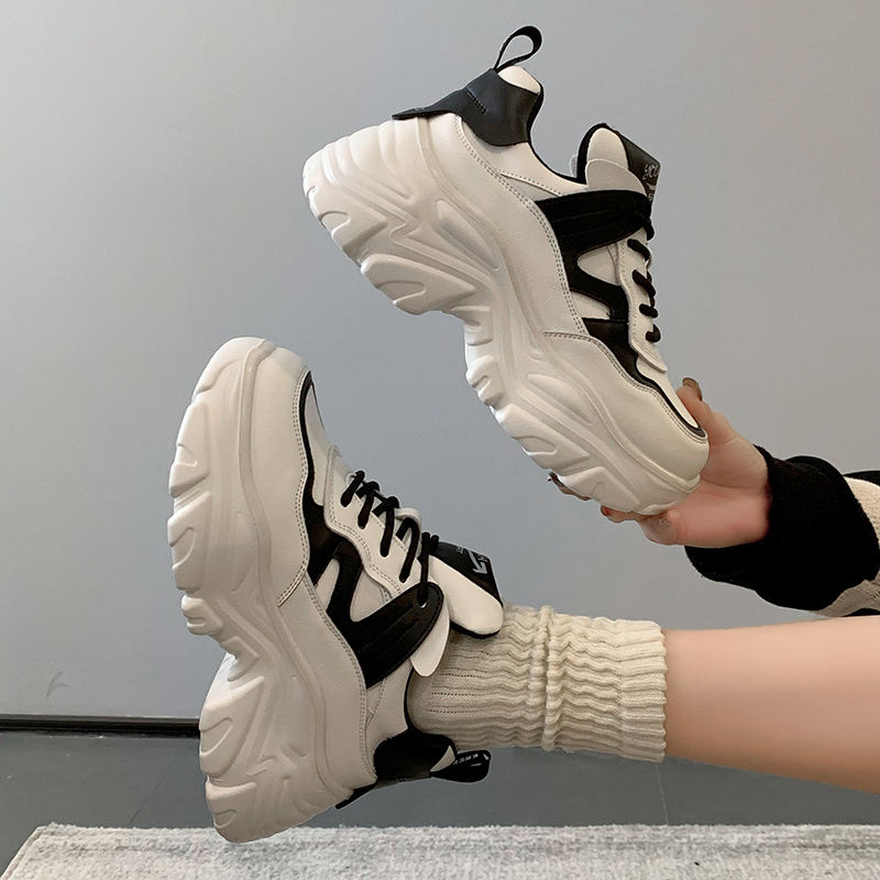 Factory Ladies' Thick Soled Trendy Women's Sports Shoes Black White Beige Simple Style Women Sneakers