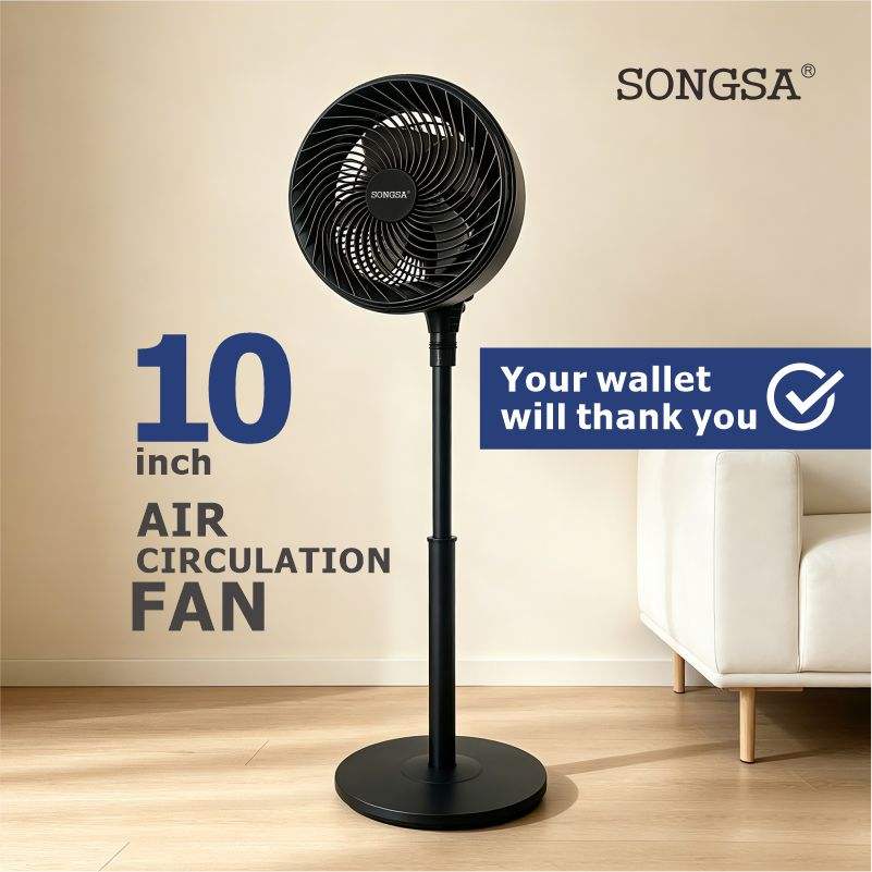 Ventilatore a piantana elettrico portatile da 10 pollici, 3 velocità, a basso consumo energetico, prezzo di fabbrica all'ingrosso.