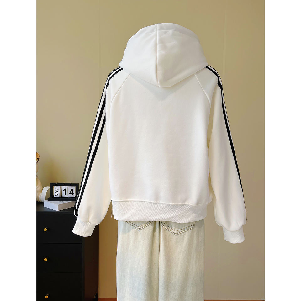 Factory Manufacturer High-quality American White Three bar Hooded Sweatshirt for Women's Autumn and Winter Thick Loose Jacket