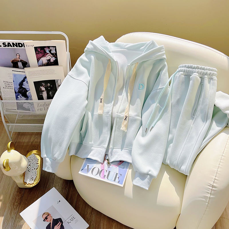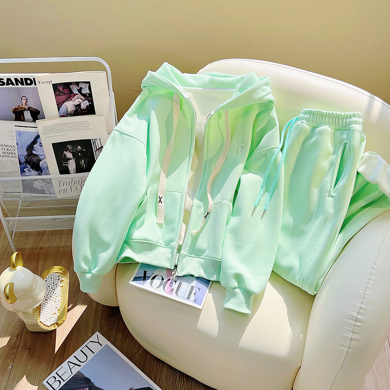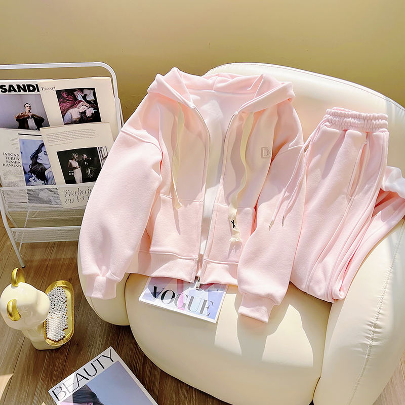 Set Due Pezzi di Alta Qualità del Produttore: Cardigan Sportivo Casual Rosa e Pantaloni alla Caviglia per Donna