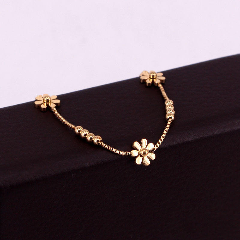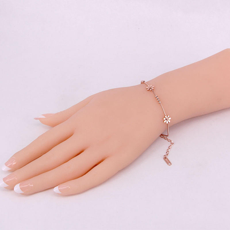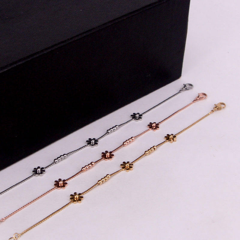 Produttori di fabbrica scatola in acciaio inox catena oro rosa placcato margherita braccialetti di fiori per le donne gioielli