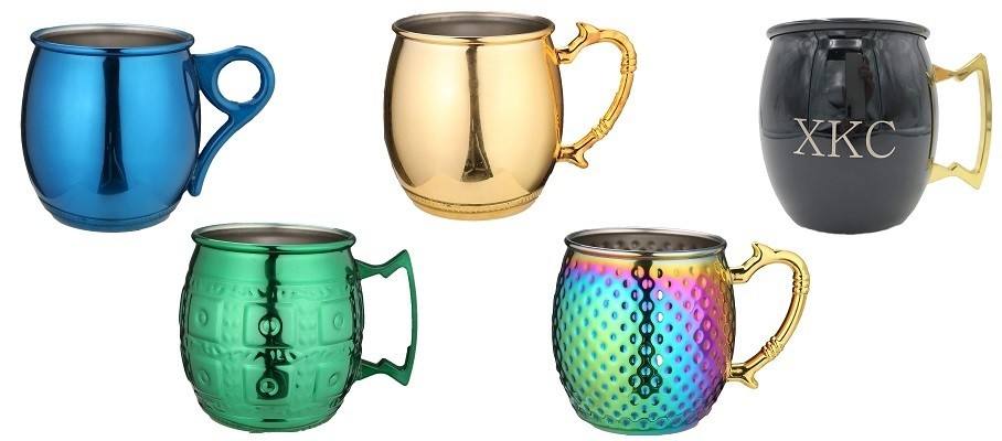 Tazza di Mule di mosca di fabbrica tazza martellata da 20 once in acciaio inossidabile fodera in acciaio inossidabile placcatura rossa e oro con manico unico tazza da Cocktail