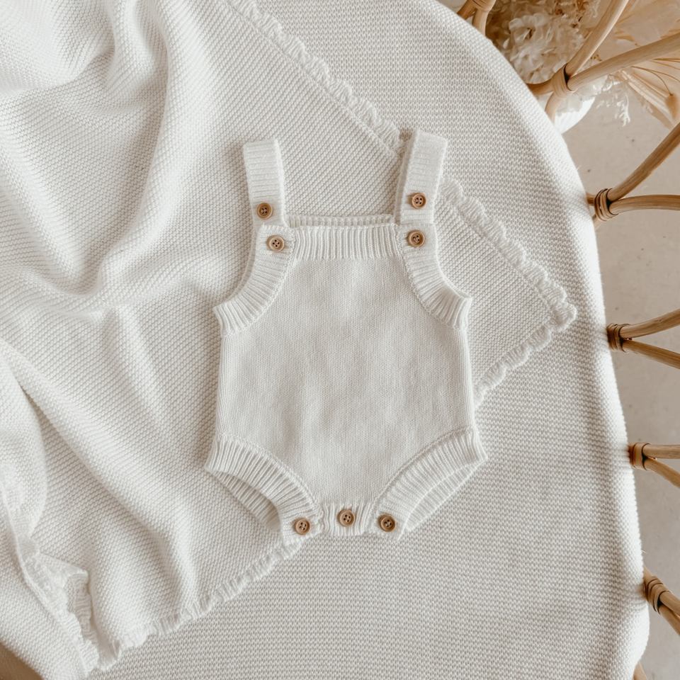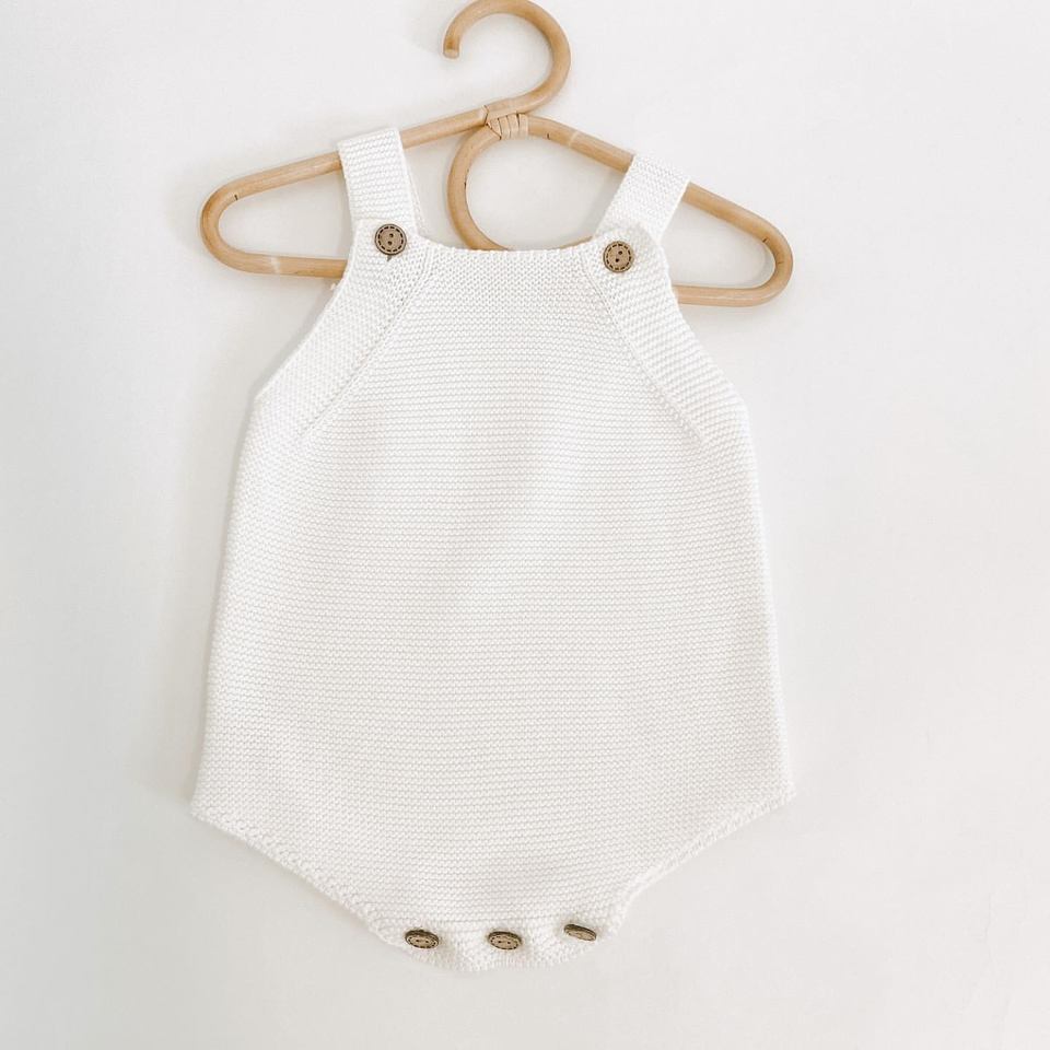 Factory New Arrival Cotton Summer Classic White Baby Infant Knitted Romper Kids' Clothing Solid Plain Cotton Knitting Romper