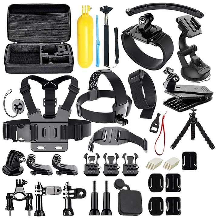 Kit di accessori per fotocamera d'azione OEM 50-in-1 portatile staffa flessibile per la pulizia della ventosa testa cinghia montaggio bici flottante