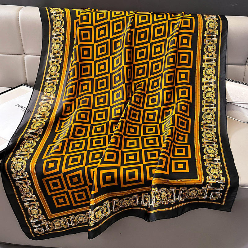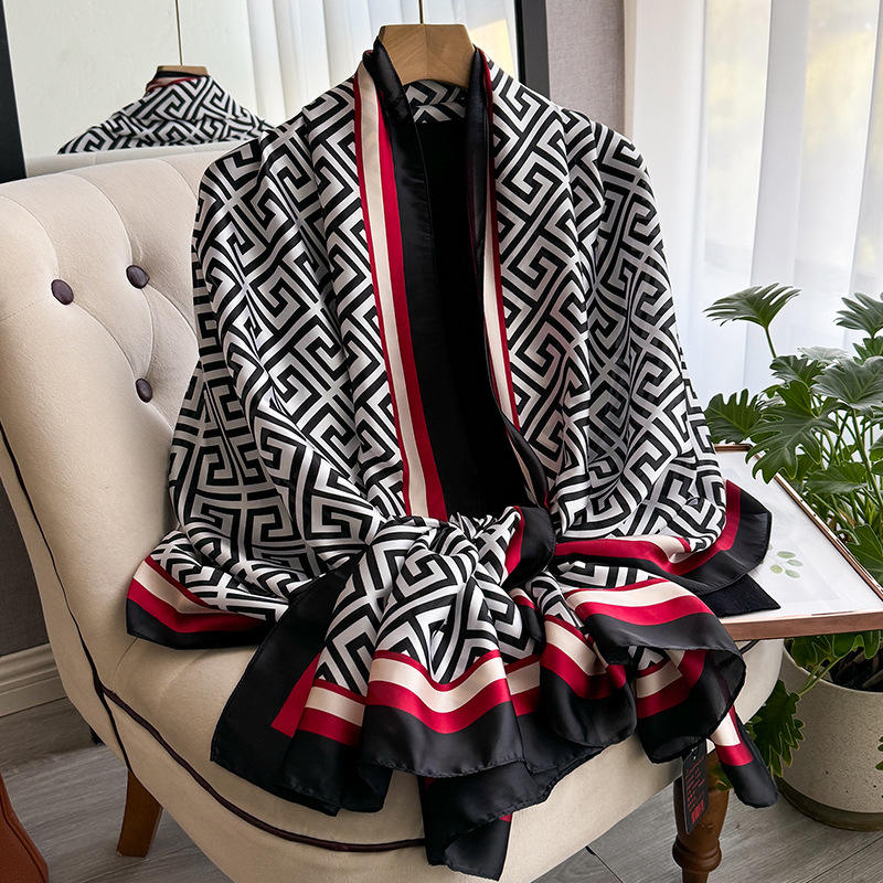 Factory OEM Large Soft New Fashionable Wrap Shawl With Brand Designer Letter Pattern Printed Polyester Silk Scarf for Women