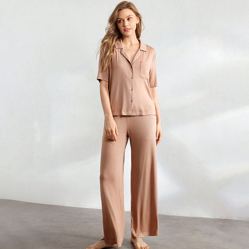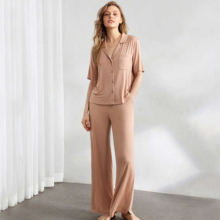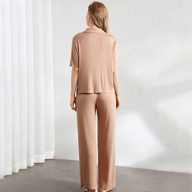 Set Pigiama Invernale da Donna in Fibra di Bambù 100% Personalizzato OEM ODM, 2 Pezzi, Morbido e Traspirante, Maniche Lunghe, Vendita all'Ingrosso
