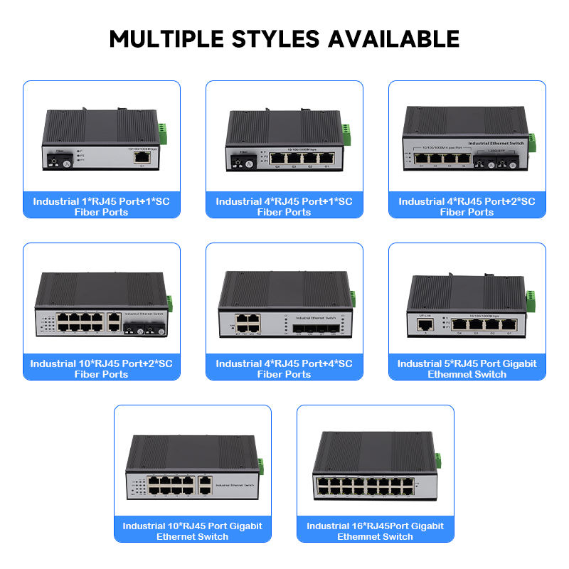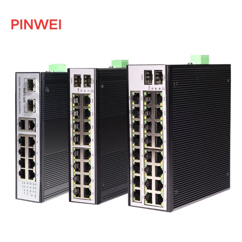 Switch Ethernet Industriale OEM/ODM da Fabbrica, Montaggio su Guida DIN, 1000Mbps, 1-24 Porte RJ45 + 1-8 SFP Gigabit, PoE/Non-PoE
