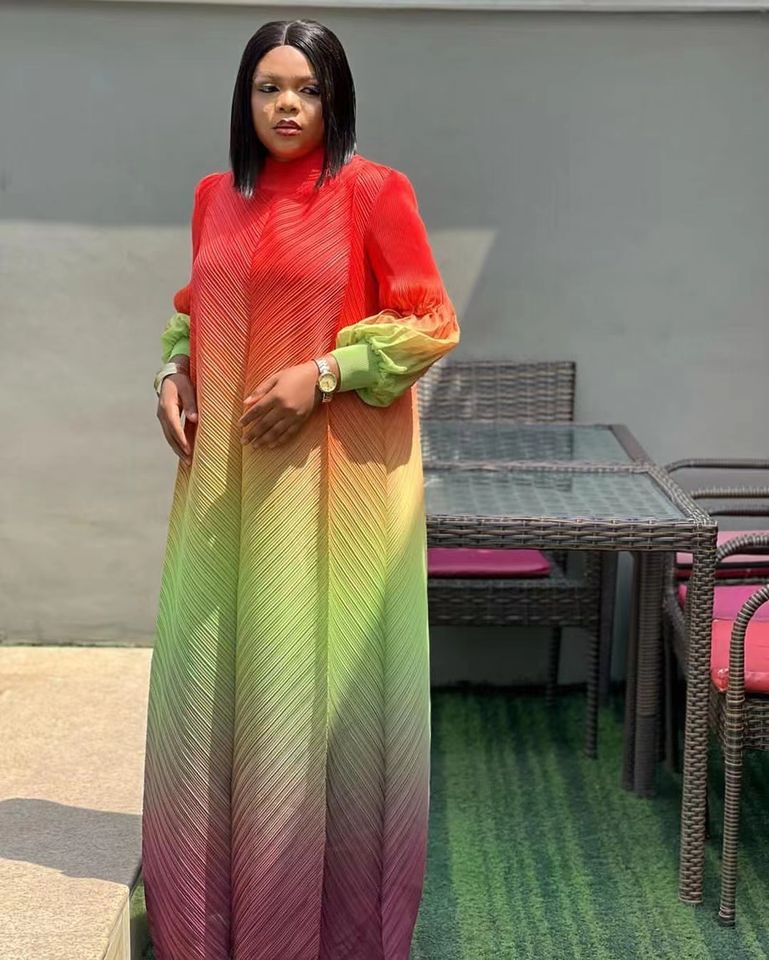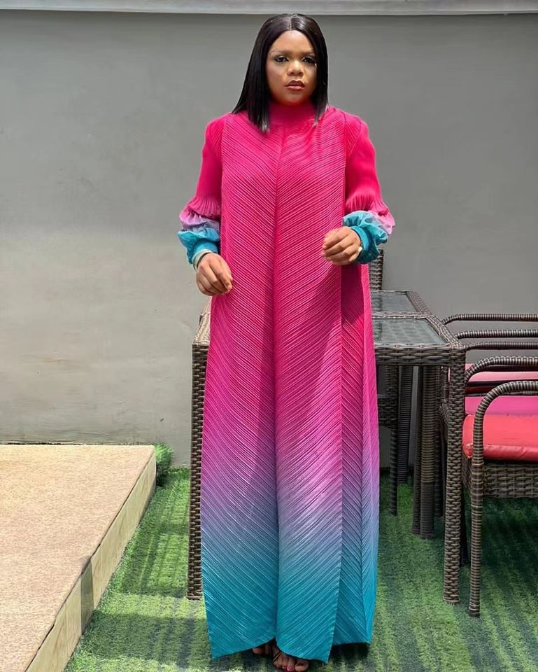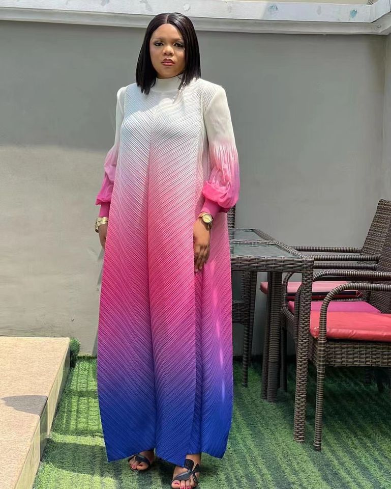 Outlet di Fabbrica Ultimo Nuovo Stile Abiti Lunghi Casual da Donna Taglie Forti con Maniche Lunghe Plissettate