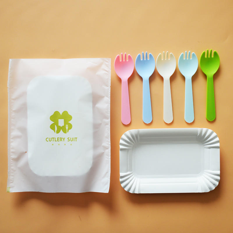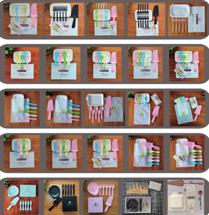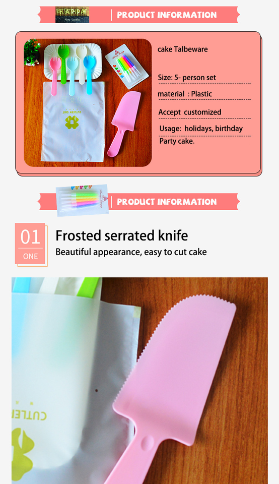 Presa di fabbrica piatto di plastica colorato forchetta e coltello per festa torta di compleanno Set di stoviglie usa e getta torta posate Set
