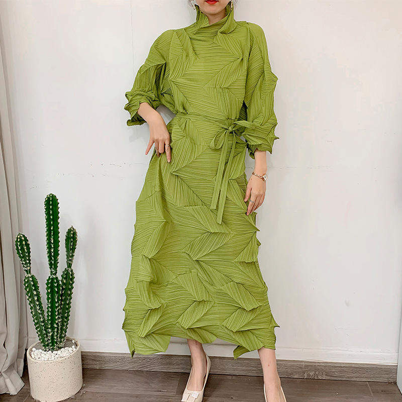 Factory Outlet Women's Casual Style Irregular Dress Loose Plus Size Belt Fashion Personality Pleated Dress