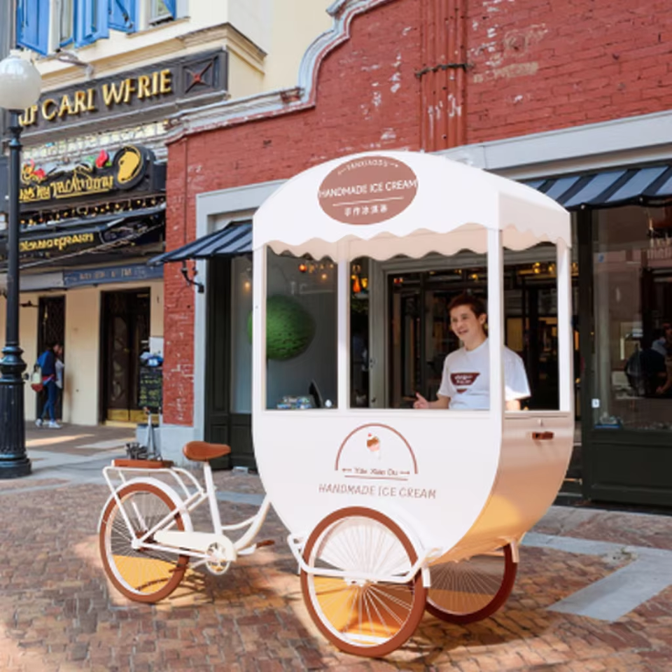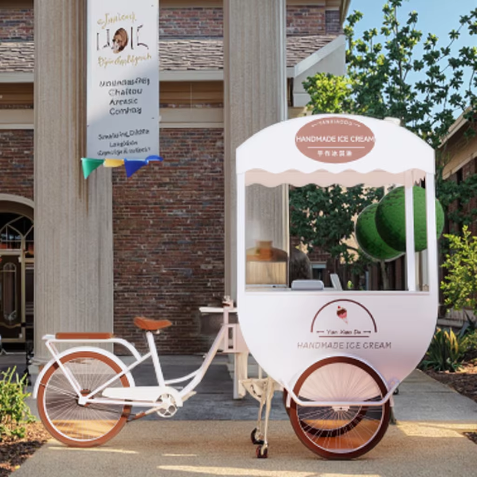 Factory Outlets Multi-Functional Mobile Tricycle 3-Wheel Street Food Vendor for Hot Dogs & Ice Cream Made of Durable Fiberglass