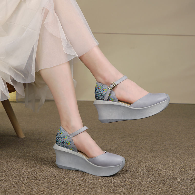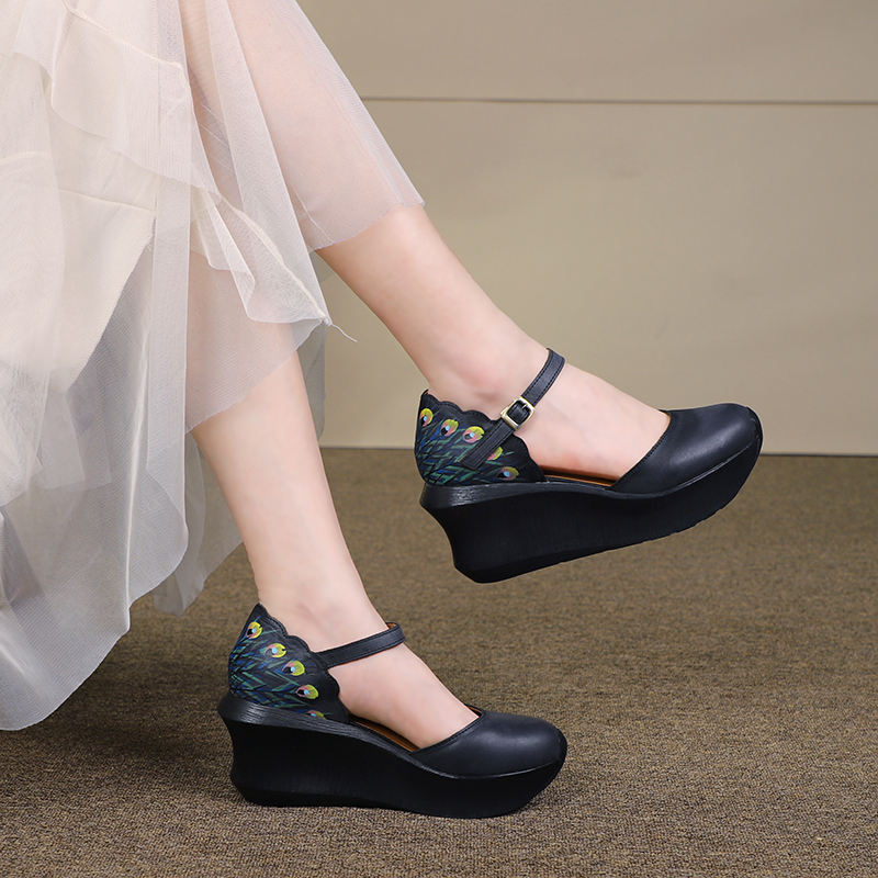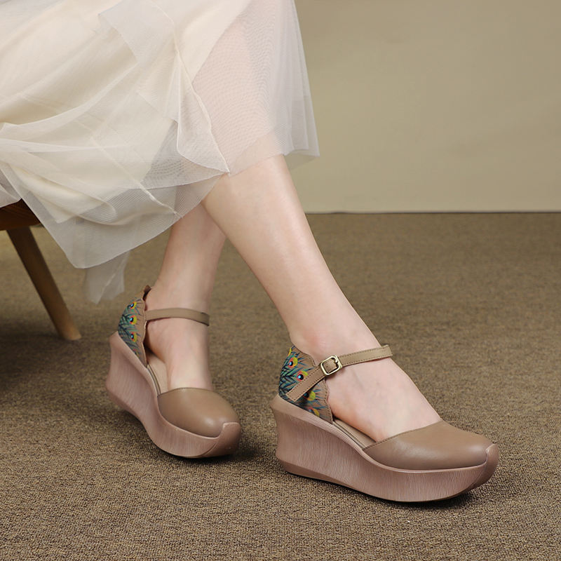 Prezzo di fabbrica 100% scarpe in vera pelle per donna piattaforma alta vintage con zeppa dipinta a mano sandali scarpe tacchi all'ingrosso