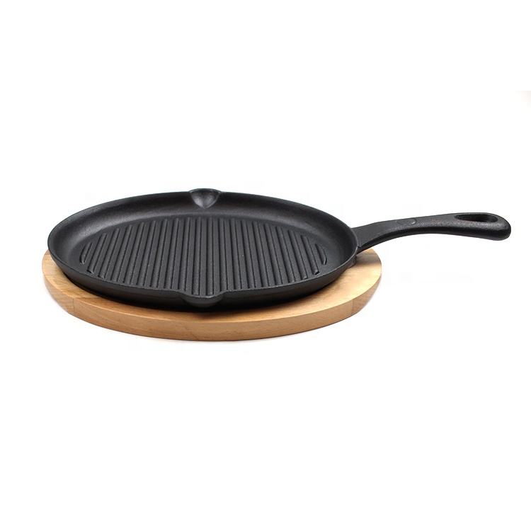 Nome del prodotto:Ghisa bistecca griglia piastra frizzante padella con base in legno