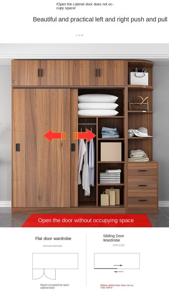Mechanismo porta scorrevole: Le porte scorrevoli risparmiano spazio e offrono un facile accesso al contenuto dell'armadio, rendendole ideali per stanze piccole o spazi ristretti.