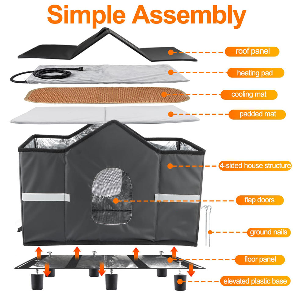 Prezzo di fabbrica CE/RoHS certificata all'aperto gatti casa 3-4 gatti lamina di alluminio Oxford 900D resistente all'umidità resistente alla pioggia inverno solido riscaldato