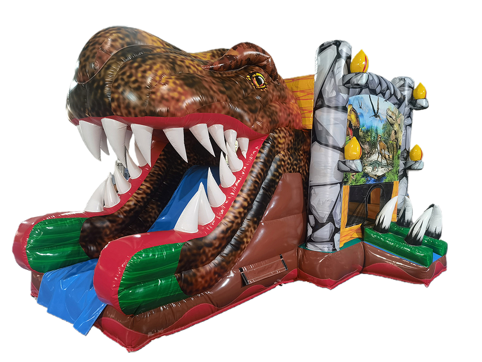 Castello Gonfiabile Commerciale Personalizzato a Tema Dinosauro per Bambini con Scivolo e Area Salto - Prezzo di Fabbrica