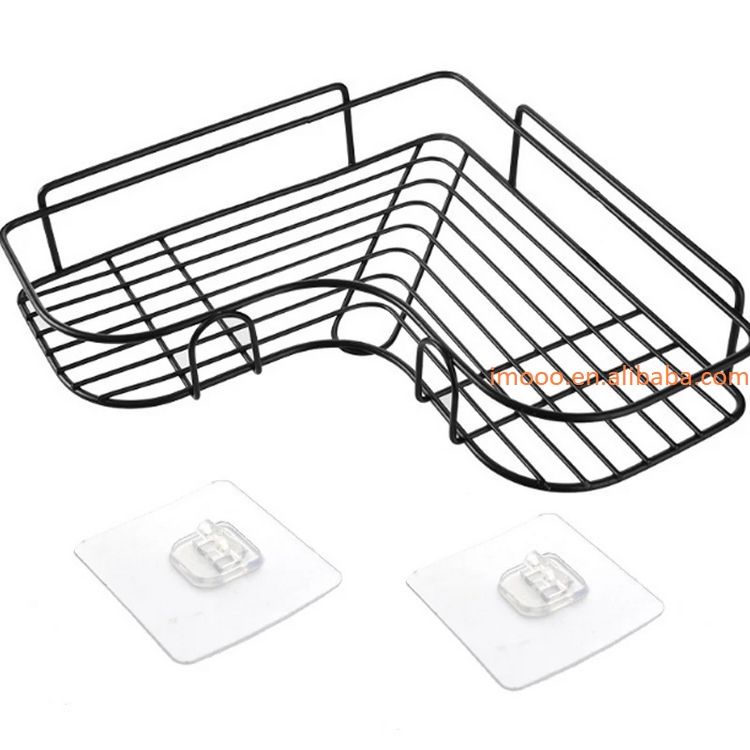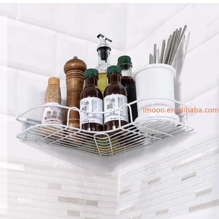 Prezzo di fabbrica scaffale angolare in metallo cucina bagno mensola a parete in ferro battuto scaffale essenziale senza punzoni con adesivo