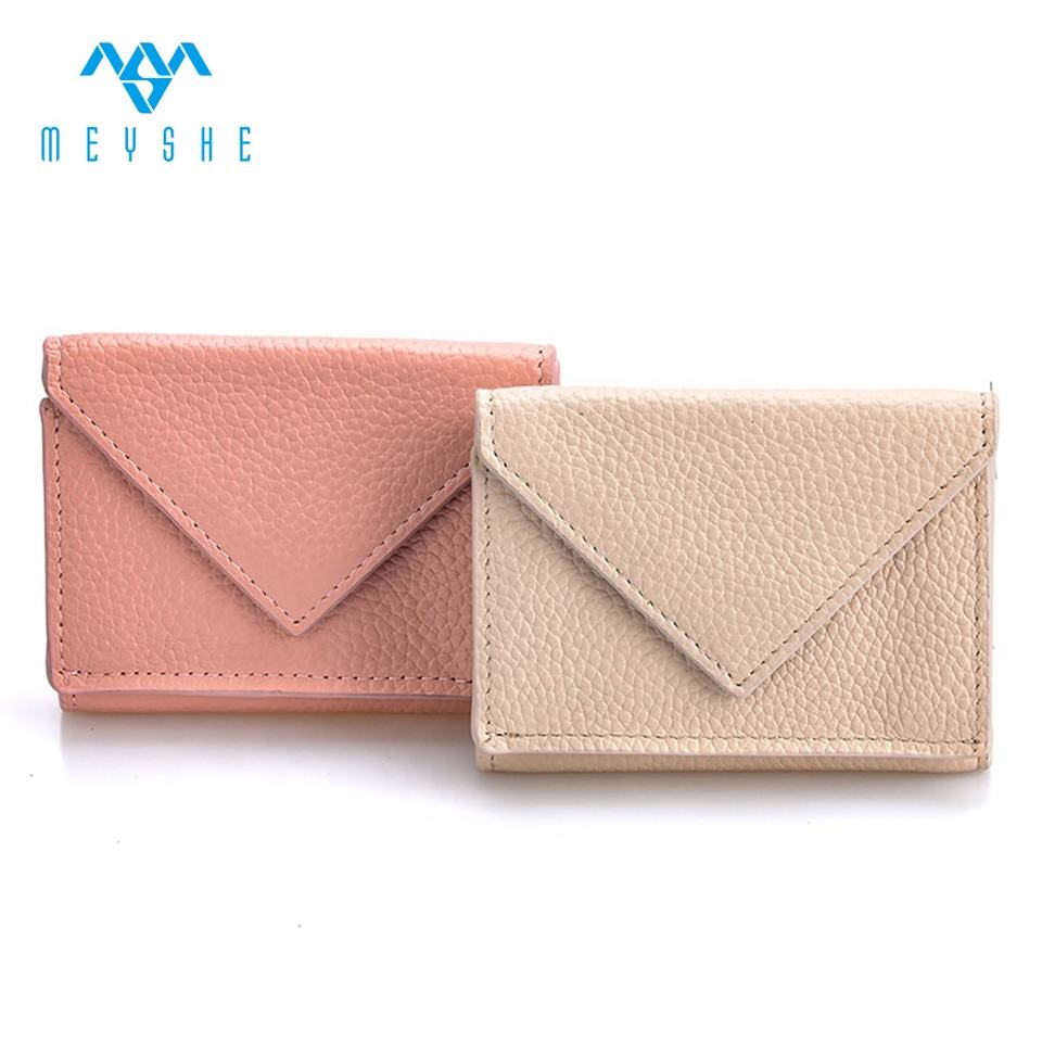 Prezzo di fabbrica personalizzato rosa vera pelle donna Mini porta carte portafoglio con bottone portamonete