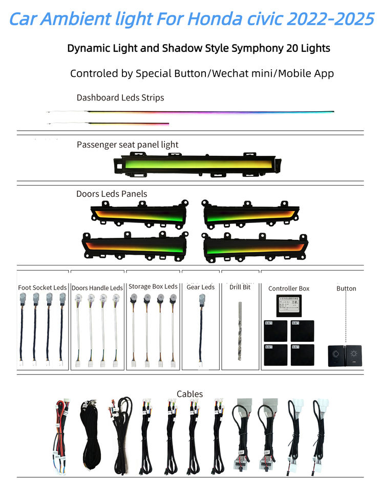 Prezzo di fabbrica stile dinamico Auto sinfonia atmosfera luce ambientale Kit decorazione per Honda Civic 11 2022-2025 Auto interni