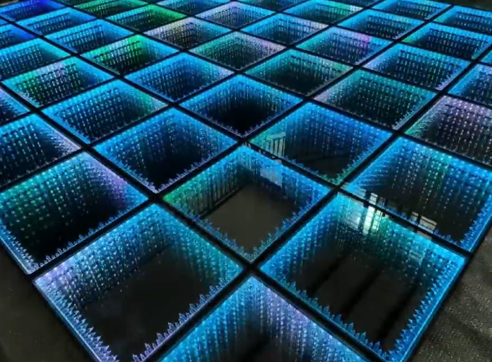 Pavimento Luminoso LED Quadrato Stile Ghiacciaio 3D con Effetto Infinito e Magnete RGB per Matrimoni ed Eventi a Prezzo di Fabbrica