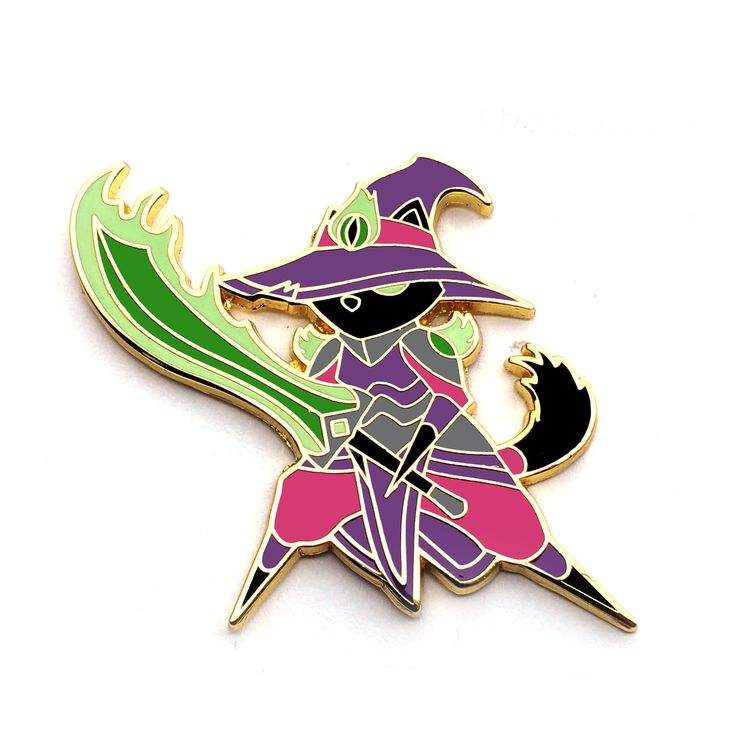 Prezzo di fabbrica vendita calda nero gatto glitterato spilla in metallo oro distintivo personalizzato strega bacchetta fuoco smalto duro spille spille