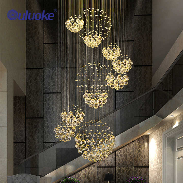 Prezzo di fabbrica grande salone decorativo Hotel hall scala sospesa montato moderno lampadario di cristallo a Led