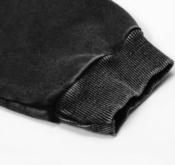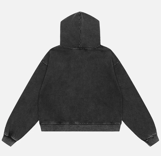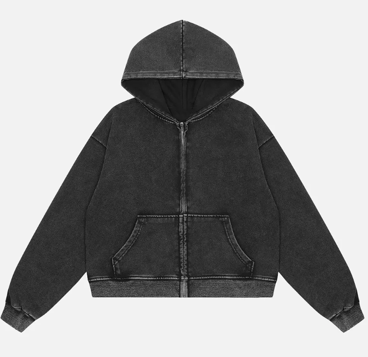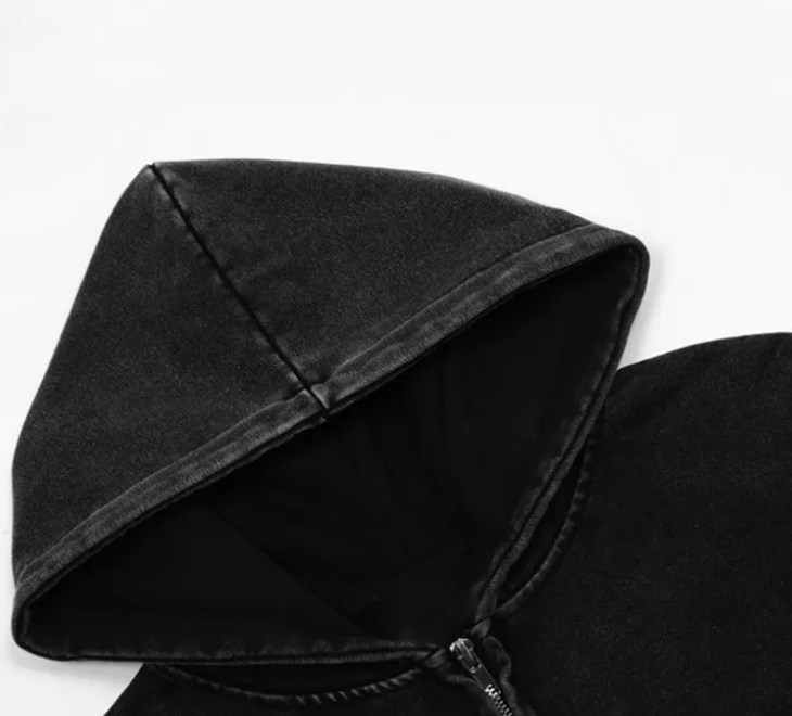 Felpa con Cappuccio Nera da Uomo con Zip, Stile Streetwear, Effetto Acid Wash, Tessuto Pesante, Prezzo di Fabbrica, Vendita all'Ingrosso