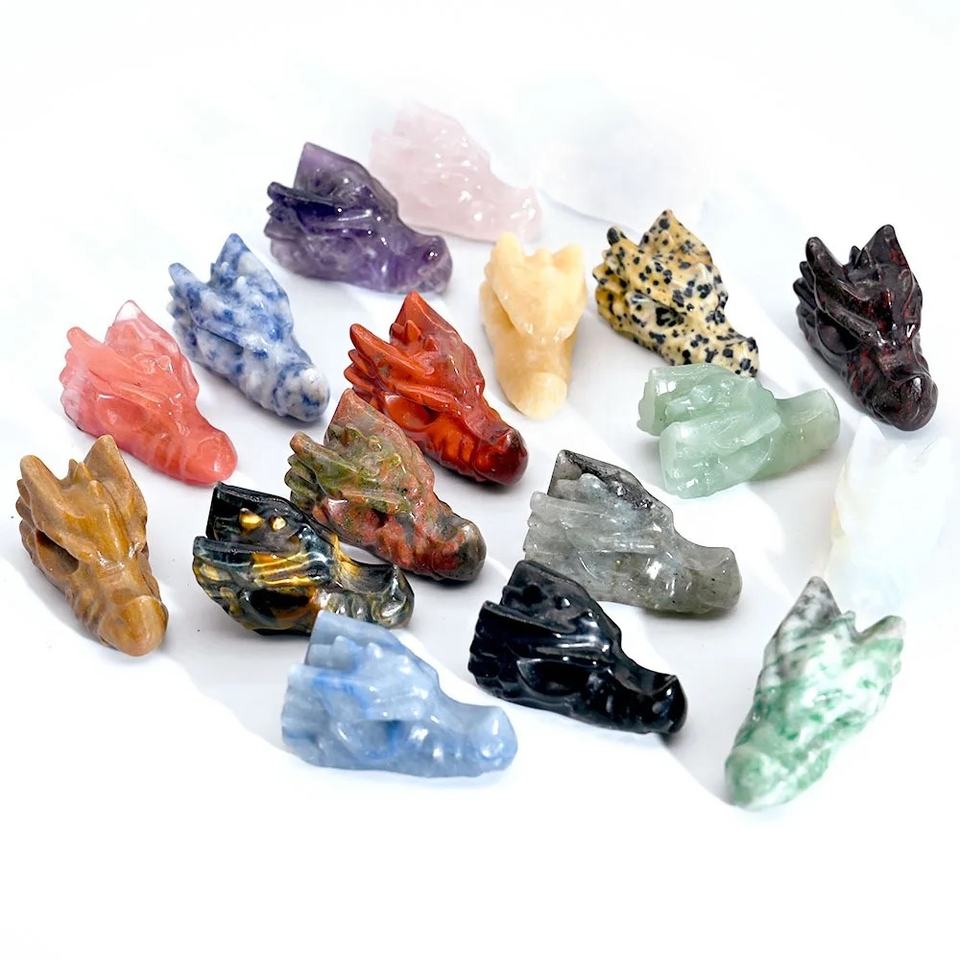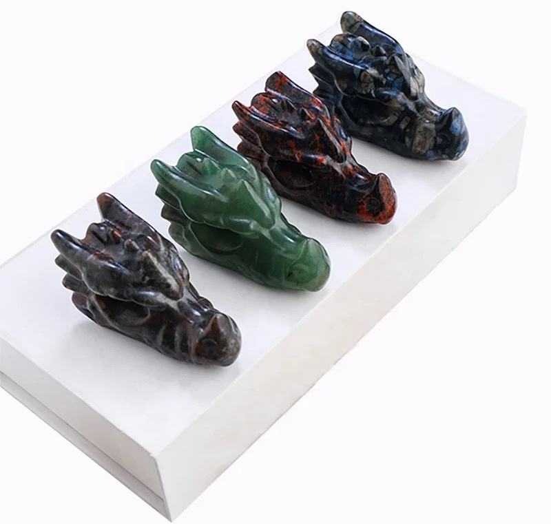 Testa di Drago Intagliata in Pietra Naturale Curativa, Sculture in Cristallo per Decorazione Casa a Prezzo di Fabbrica