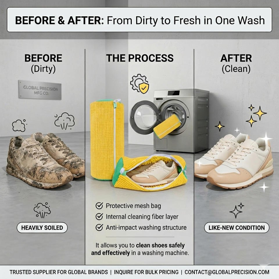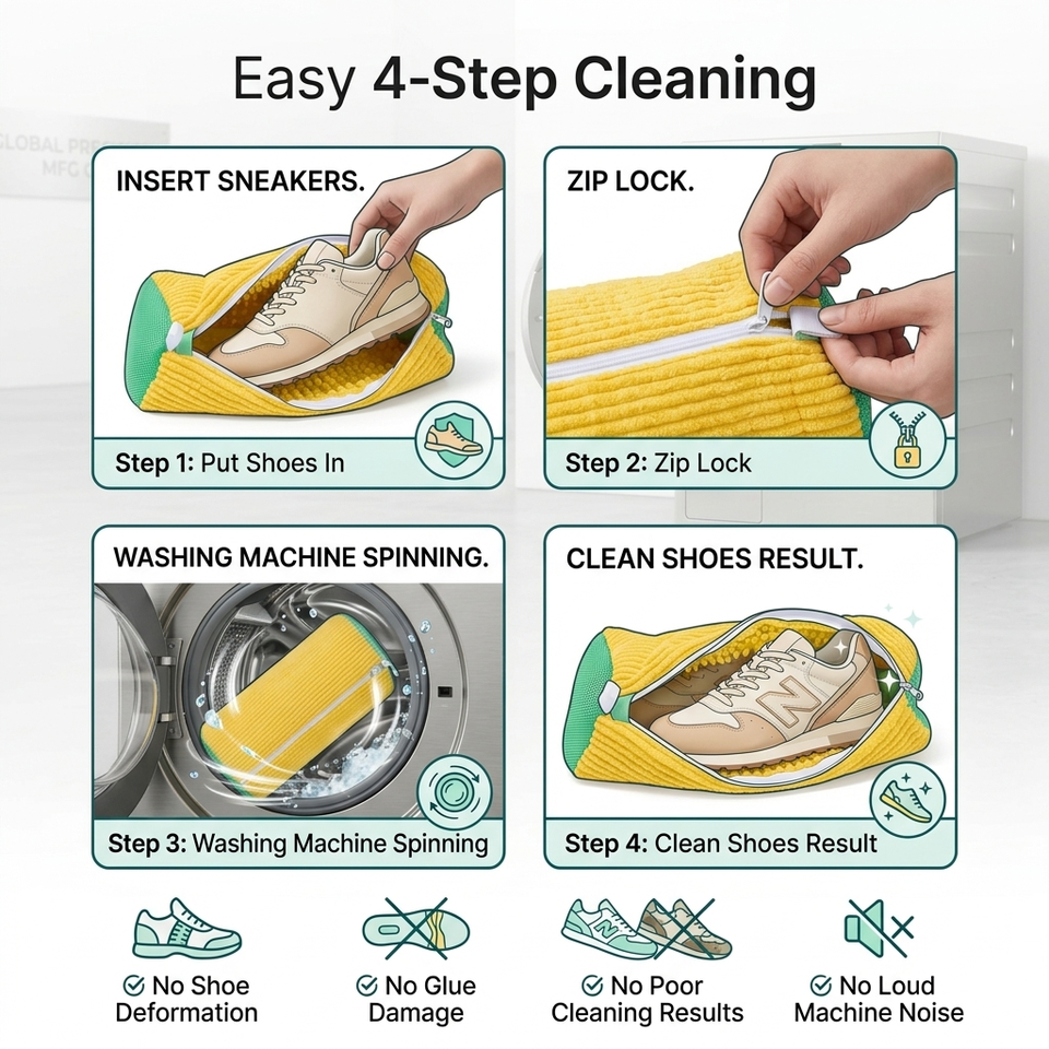 Nome del prodotto:360° Sacca per lavatrice in microfibra per sneakers con cerniera autobloccante