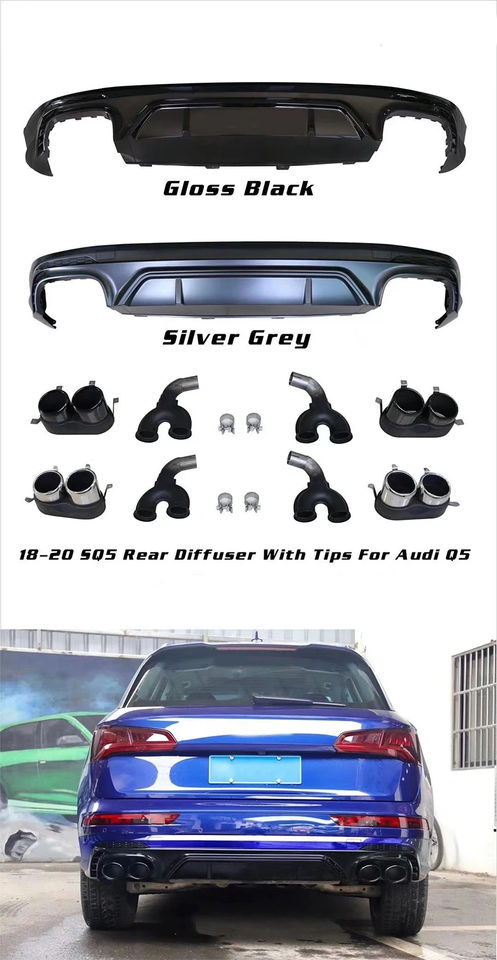 Diffusore Posteriore Stile SQ5 per Audi Q5 2018-2021, con Terminali di Scarico, Modello Sline