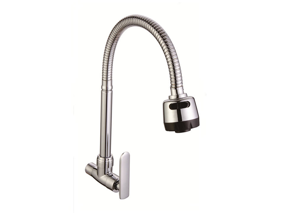 Rubinetto da cucina di qualità di fabbrica a prova di schizzi in ottone cromato per acqua fredda montate da cucina con beccuccio flessibile
