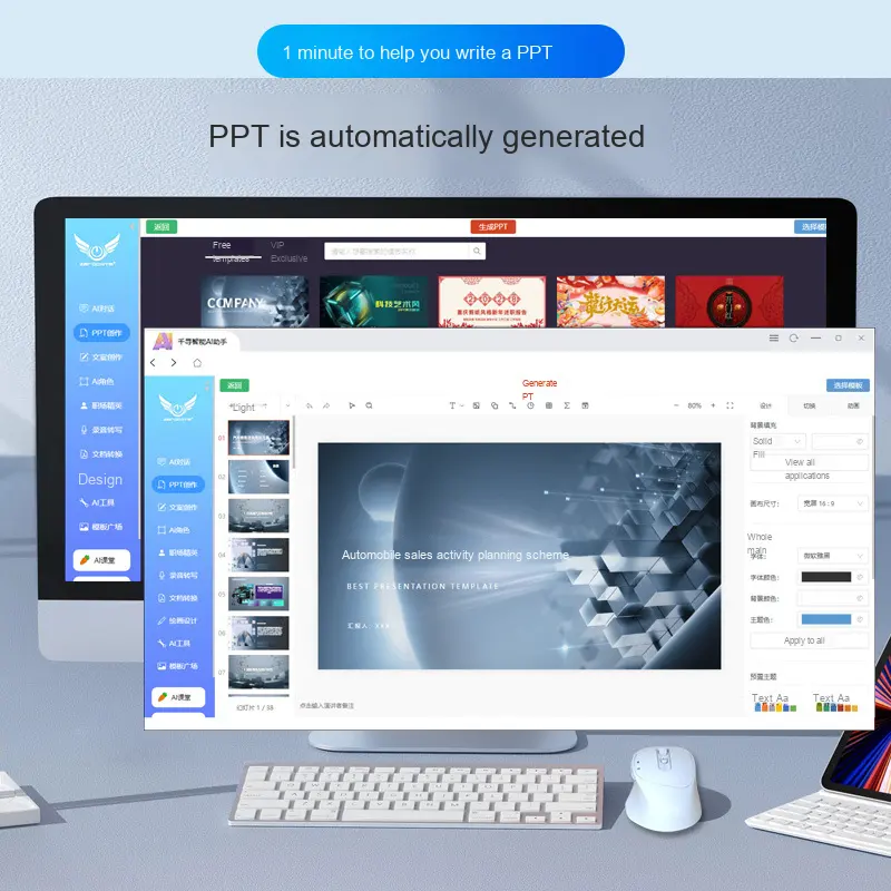 Fabbrica-Ready AI Smart Assistant Mouse LED retroilluminato 2.4GHz Wireless di tracciamento ottico USB cablato per disegno intelligente PC PPT