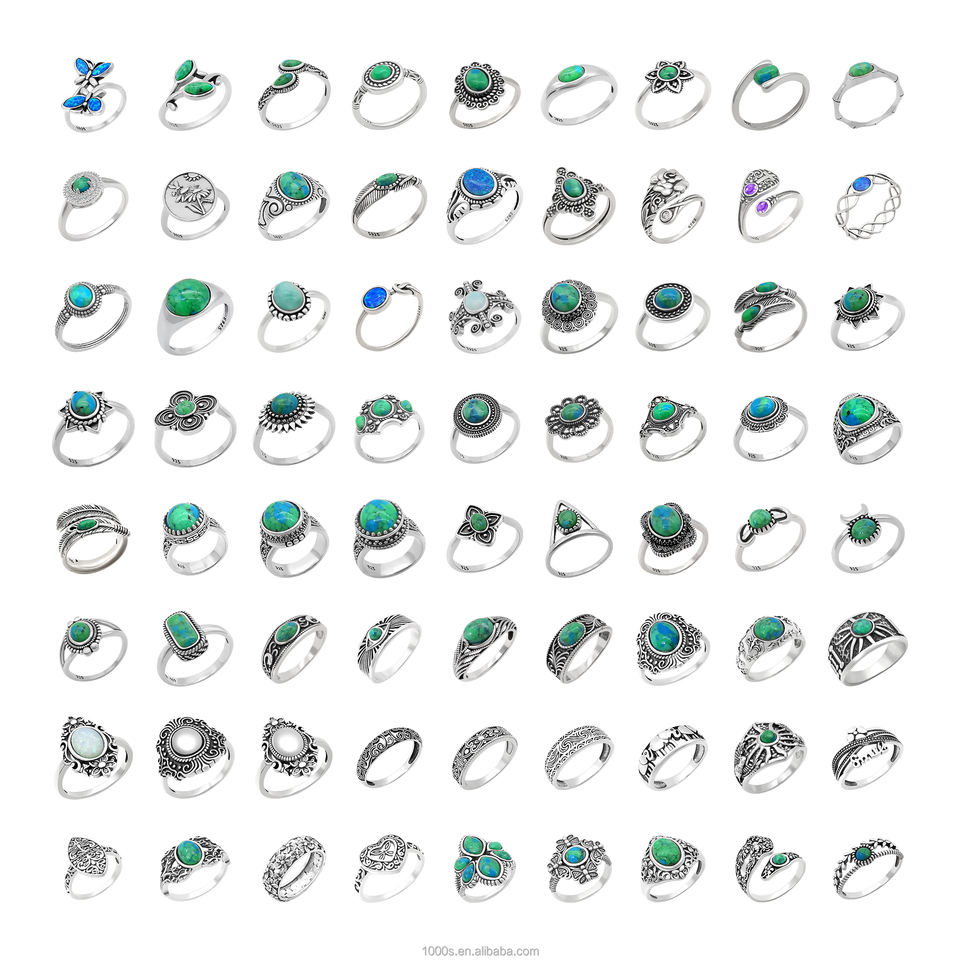 Anello di Fabbrica in Argento S925 Ossidato con Turchese, Corallo e Onice Disponibile, Gioielli alla Moda per Uomo e Donna, Nuovi Arrivi