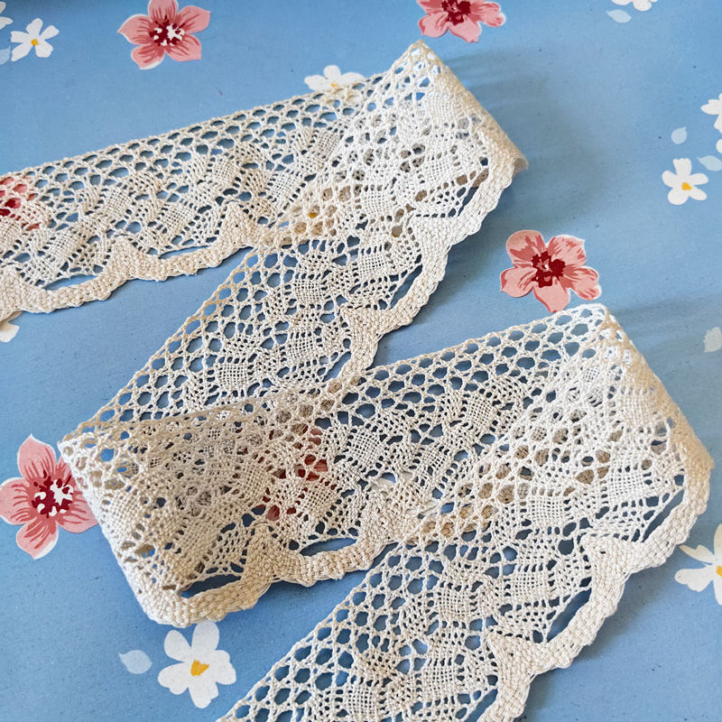 Vendita di Fabbrica Pizzo Francese in Puro Cotone 5cm Lavorato all'Uncinetto Non Elastico Naturale per Tessuti per la Casa Accessori per Abbigliamento Tende Decorative