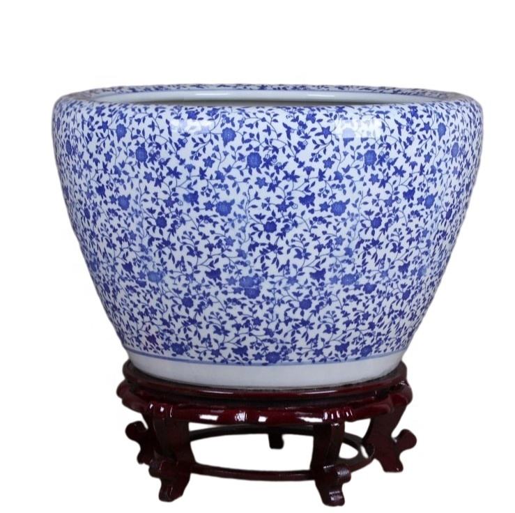 Vendita in fabbrica direttamente blu e bianco underglaze decorazioni da giardino in ceramica grande vaso per piante piante artificiali in vaso