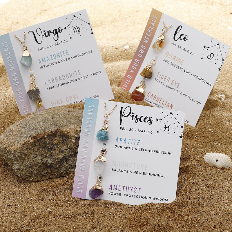 Offerta di Fabbrica Collana di Tendenza con Ciondolo Pietra Grezza Naturale del Quarzo dei 12 Segni Zodiacali Catena in Acciaio Inossidabile e Biglietto con Pietra Curativa