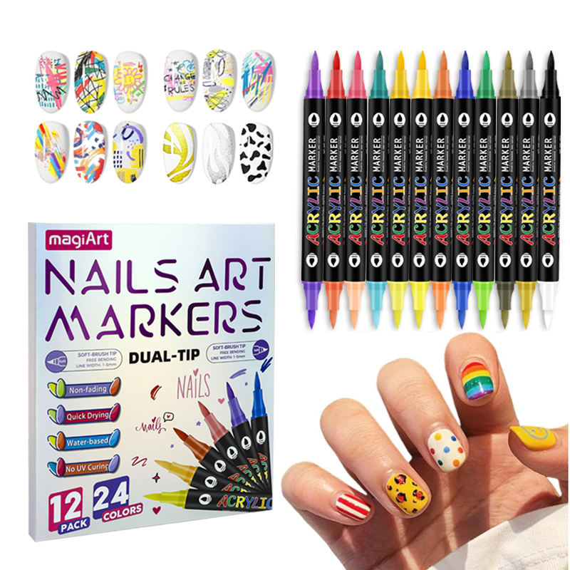 Set di Pennarelli per Nail Art in Acrilico con Doppia Punta, Penna per Decorazione Unghie Non Tossica, Kit per Decorazione Unghie Fai-da-Te Senza UV