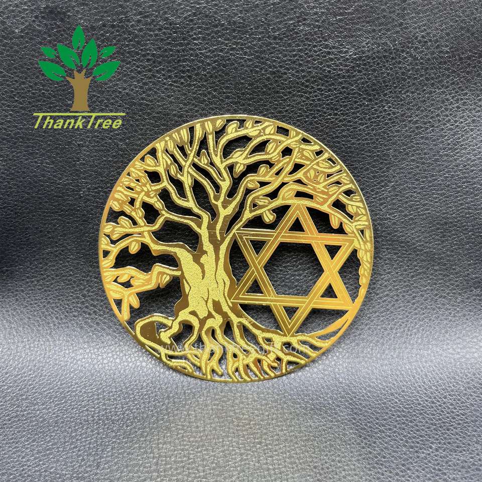 Stock di fabbrica souvenir religioso indiano regalo placcato oro albero della vita carta energetica in metallo