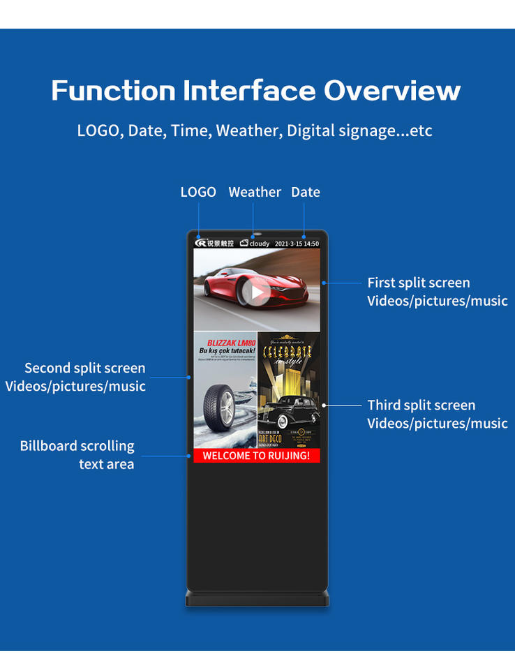 Fornitore della fabbrica di Grandi Dimensioni Stazione Degli Autobus Schermo Pavimento Esterno di Trasporto Del Basamento Del Display Lcd 43/ 49/ 55/ 65 Pollici altre Pubblicità Attrezzature