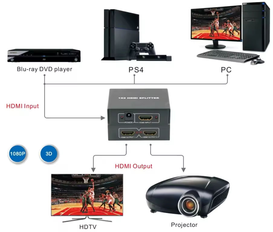 Rifornimento di fabbrica 1.3 splitter hdmi 1080P 1x2 HDMI Splitter 1 in 2 uscita porta distributore Video splitter