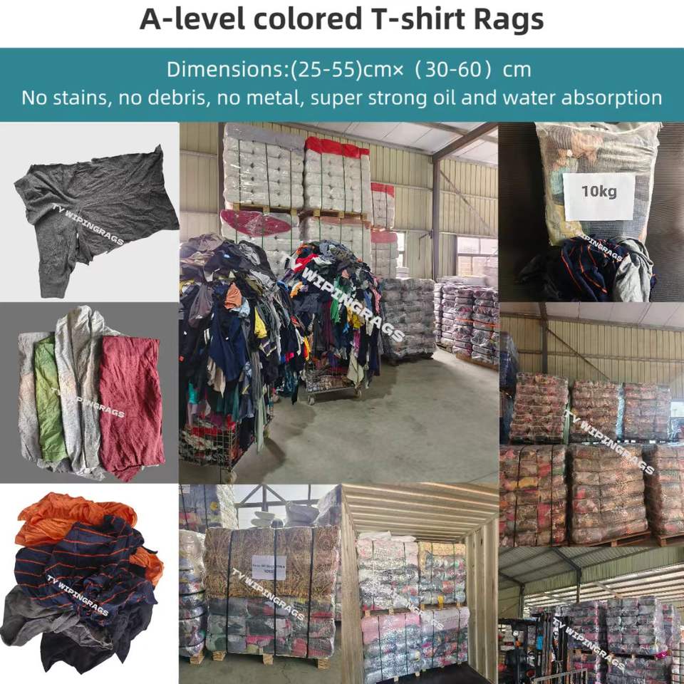 Stracci di Stoffa Usati da 35-55 cm, Fornitura Diretta dalla Fabbrica, Balle da 20 kg, Stracci Industriali in Cotone per Magliette, Stracci per Pulizia Industriale