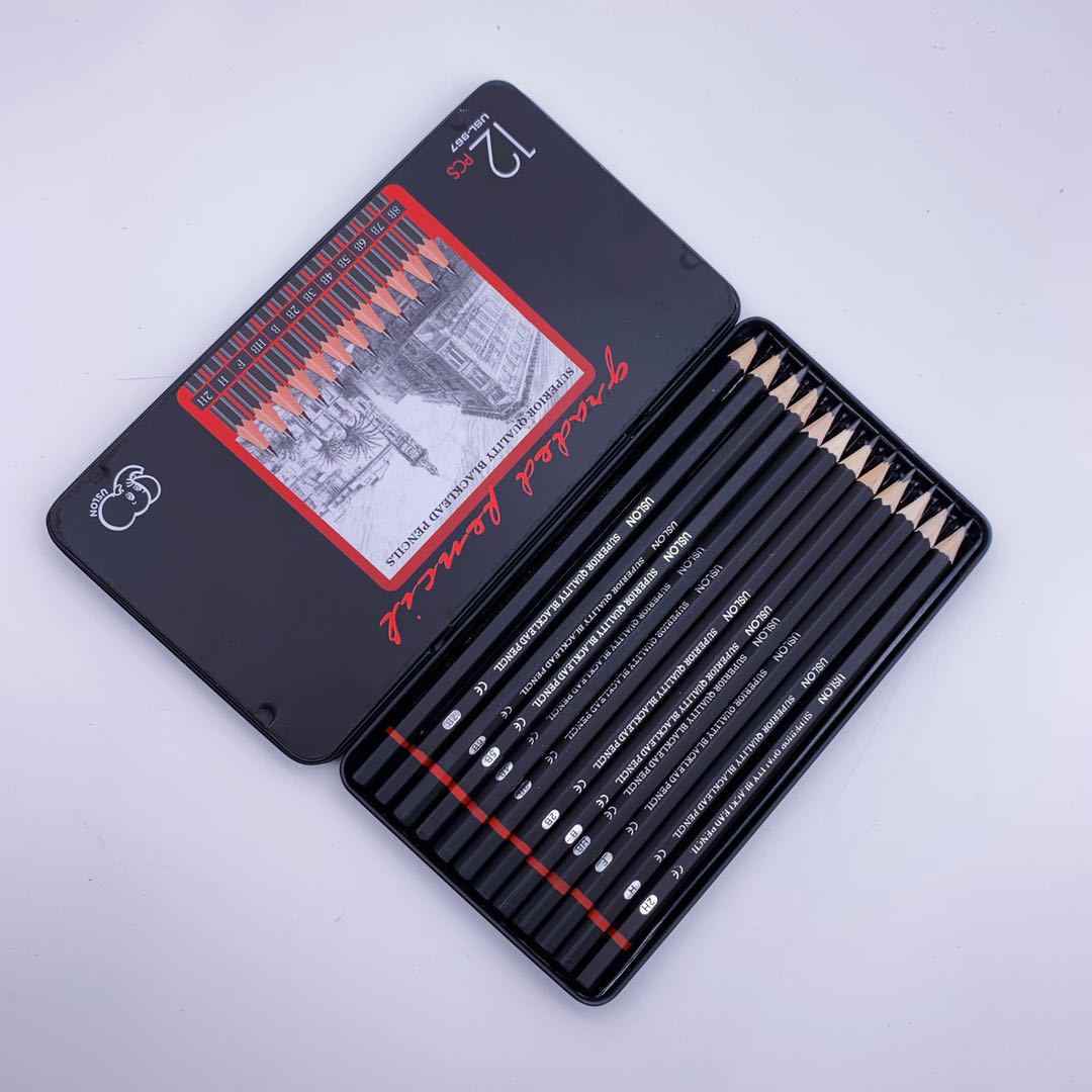 Factory Supply Artline Drawing Sketching Pencil F H B With Metal Box Package with plastic bag package, then put into carton