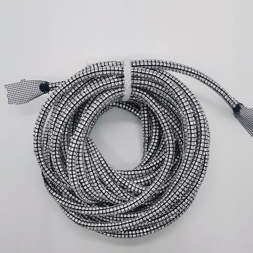 Fornitura di fabbrica: Rete in corda di strass 3D da 3 mm a 6 file, tessuta a mano, ecologica, non termoadesiva, personalizzabile, per accessori di abbigliamento e vestiti