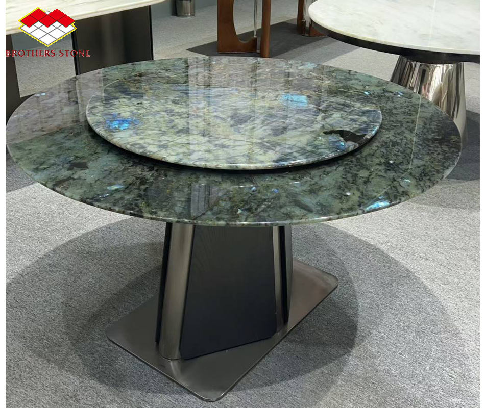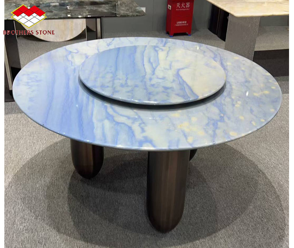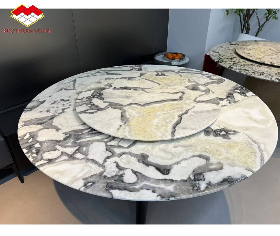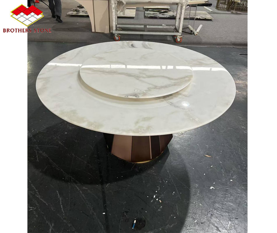 Tavolo da Pranzo in Marmo Naturale con Piano Girevole, Gambe in Metallo, Finitura Lucida, Design Moderno per Cucina e Bagno, Lussuoso