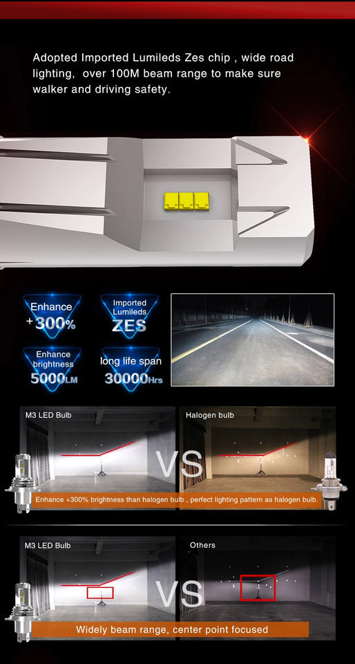Fornitura di fabbrica mini M3 luce led 5000lm H1 H7 H11 HB3 9005 HB4 9006 H4 tutte in una lampadine per auto ZES chip LED faro per auto